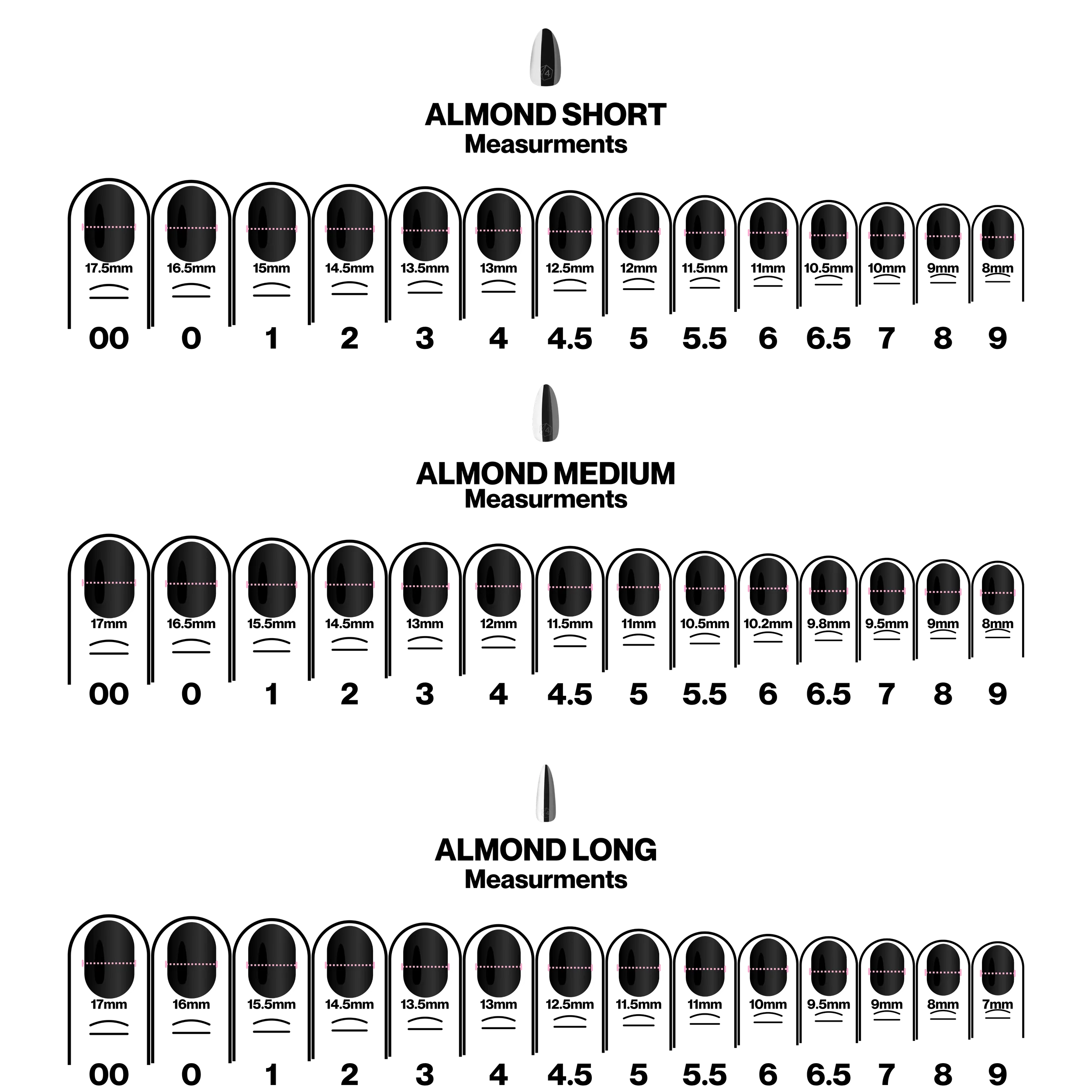 If your sizes dont match with the standard set sizes below, please measure your nails for a custom sized set.